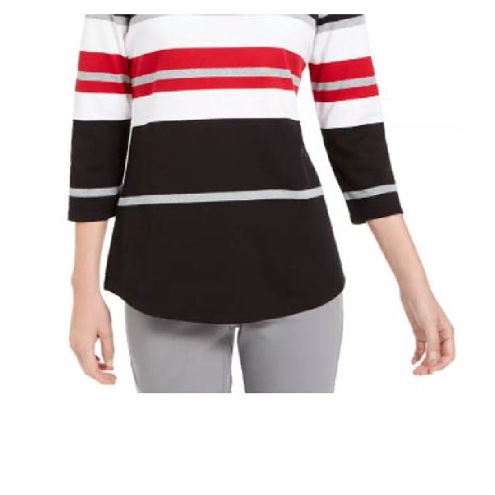 Karen Scott Top Listrado Feminino Petite Embelezado Vermelho Tamanho P