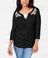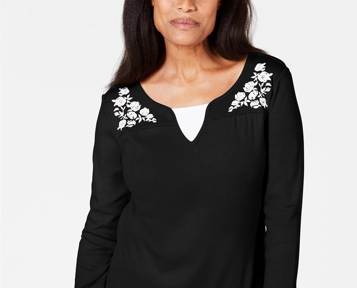 Karen Scott Top feminino pequeno de algodão bordado com aparência em camadas, preto, tamanho pequeno