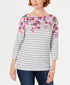 Karen Scott Blusa Feminina Listrada Floral Petite com Decote Canoa Cinza Tamanho Extra Grande