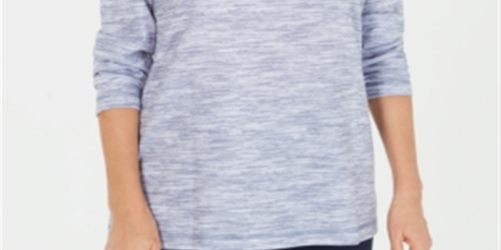 Karen Scott Top Feminino Petite Gola Funil Space-Dyed Azul Tamanho Petit M