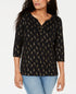 Karen Scott Feminino Petite Girafa-Estampa Henleyx-Pequeno Preto Tamanho Pequeno