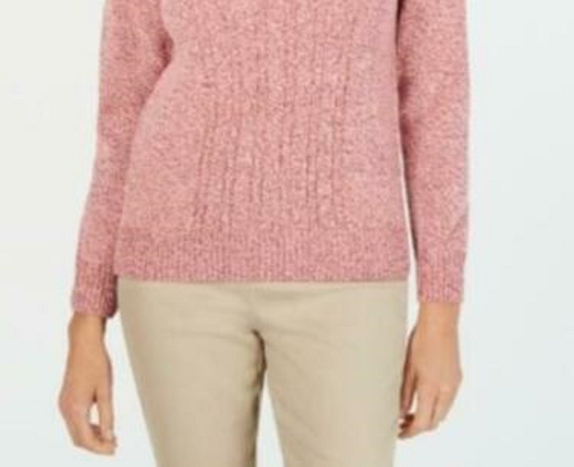 Karen Scott Suéter Feminino Petite Gola Alta em Tricô com Cabo Rosa Tamanho P