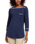 Camiseta feminina Karen Scott com acabamento em viés, tamanho azul-marinho, pequena e grande