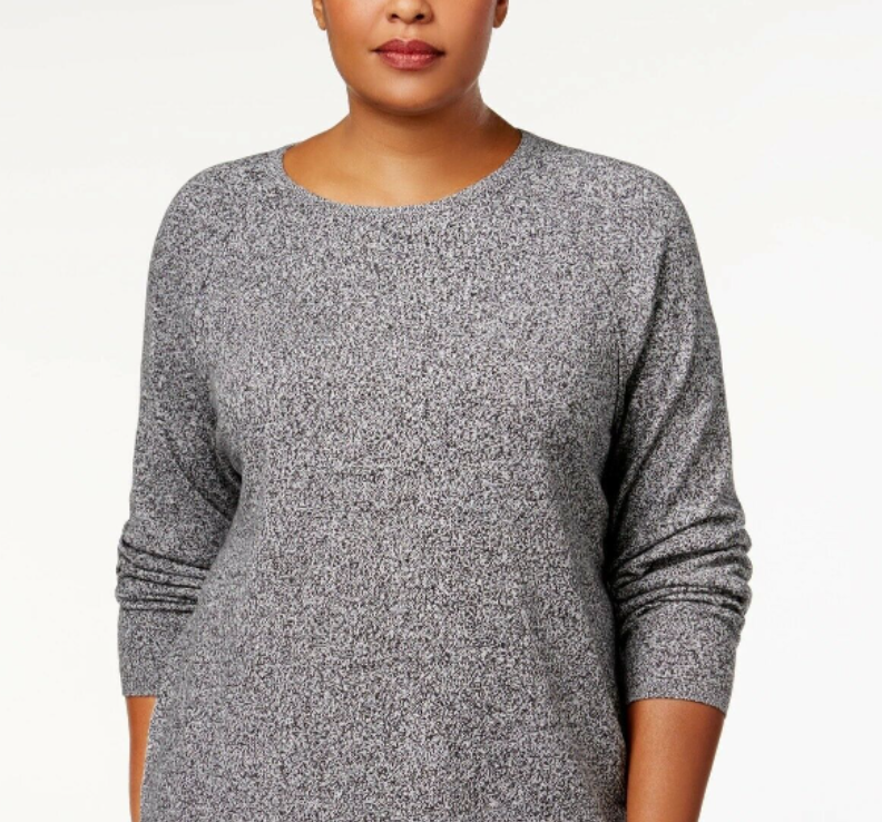 Karen Scott Suéter Feminino Plus Size com Bainha Curva Cinza Tamanho 2X