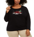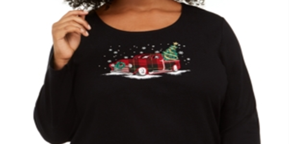 Karen Scott Top de algodão plus size para mulheres, estilo caminhão de férias, preto profundo, tamanho 1X