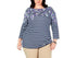 Karen Scott Blusa Plus Size Feminina Estampa Mista Manga 3/4 Azul Tamanho 0X
