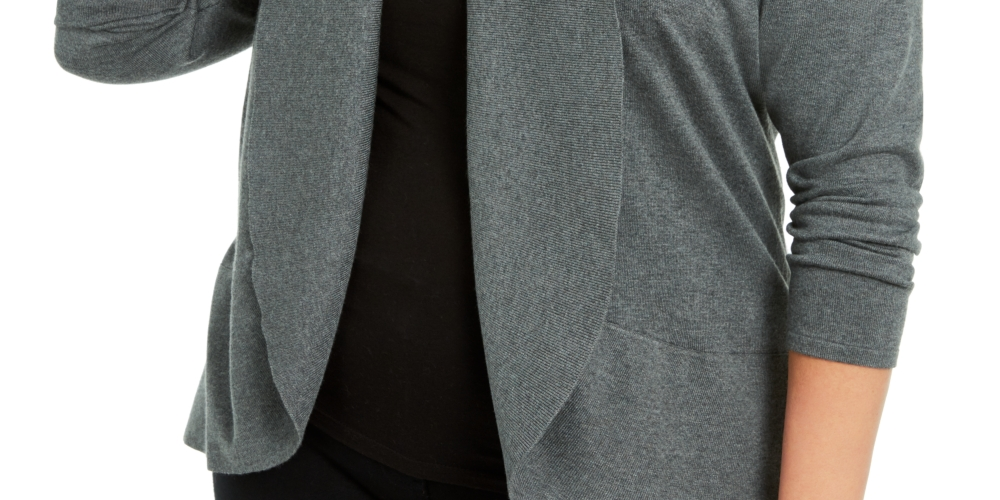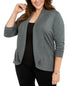 Karen Scott Cardigan Feminino Plus Size Aberto na Frente, Cinza Escuro, Tamanho 0X