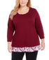 Karen Scott Top feminino plus size com acabamento xadrez vermelho tamanho 1X