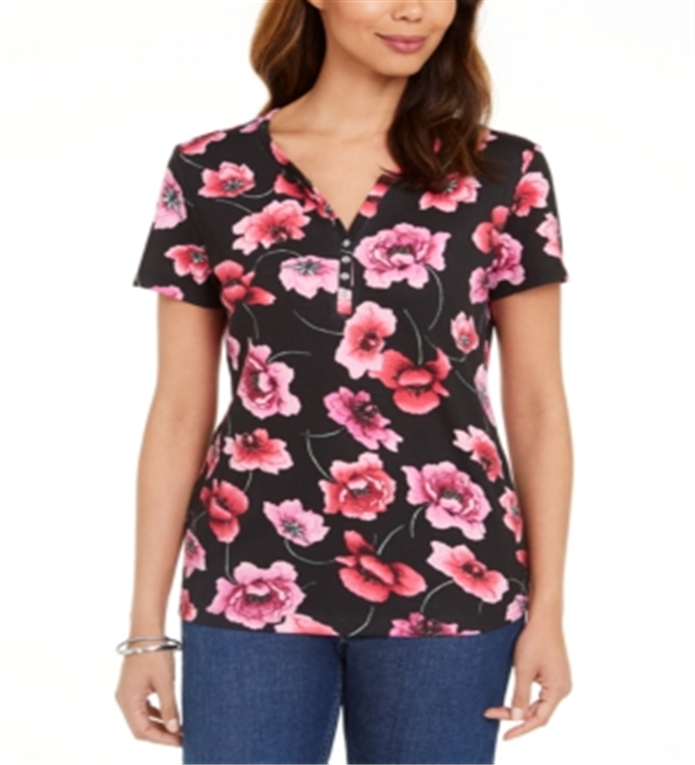 Ask a question about Karen Scott Top Henley Estampado Feminino Preto Tamanho Grande