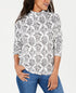 Blusa feminina Karen Scott com estampa de gola falsa, cinza, tamanho extragrande