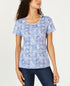 Camiseta feminina estampada com decote redondo Karen Scott, azul, tamanho médio