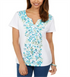 Blusa feminina Karen Scott estampada com decote dividido, branca, tamanho médio