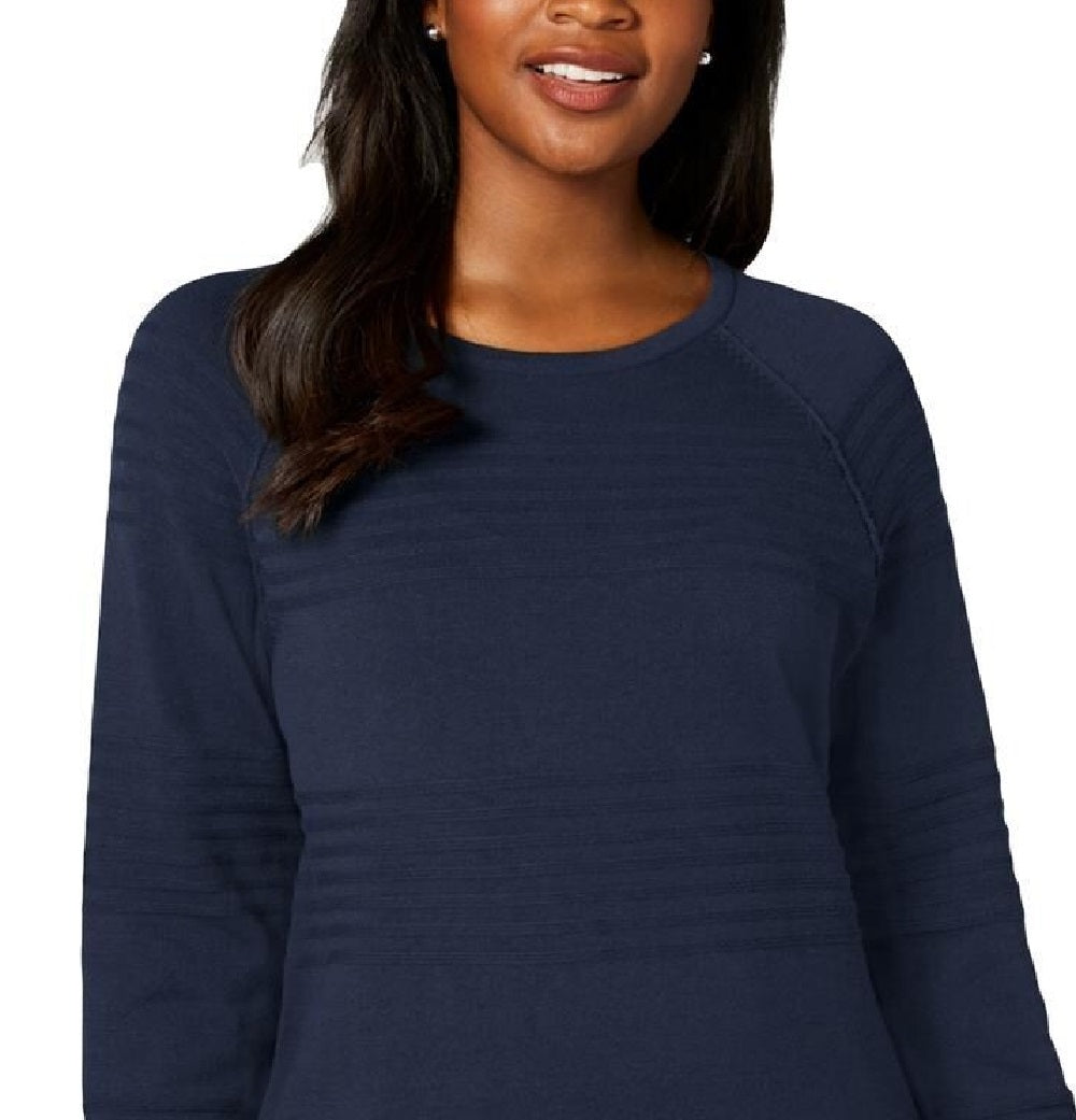 A altura aproximada da modelo é 1,78 m e ela veste tamanho pequeno | Aprox. 61 cm de comprimento no ponto mais curto; aprox. 69 cm no ponto mais longo | Devido ao tamanho generoso, sugerimos um tamanho menor para um ajuste perfeito | Decote redondo | Canelado texturizado com faixas em toda a peça; bainha curva | Todo em algodão