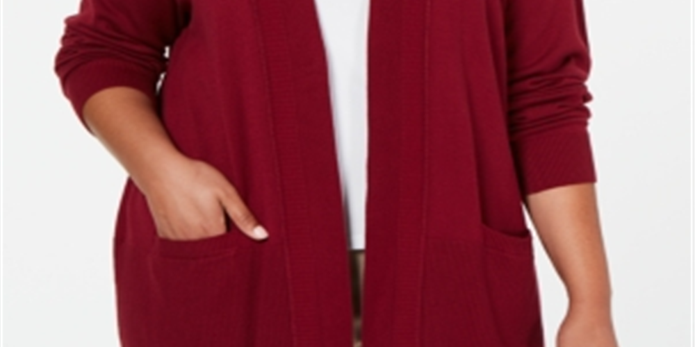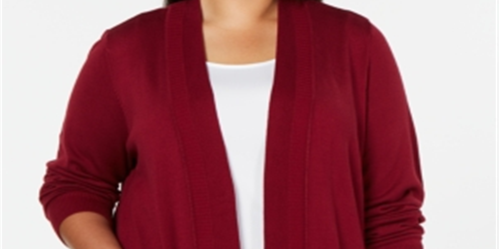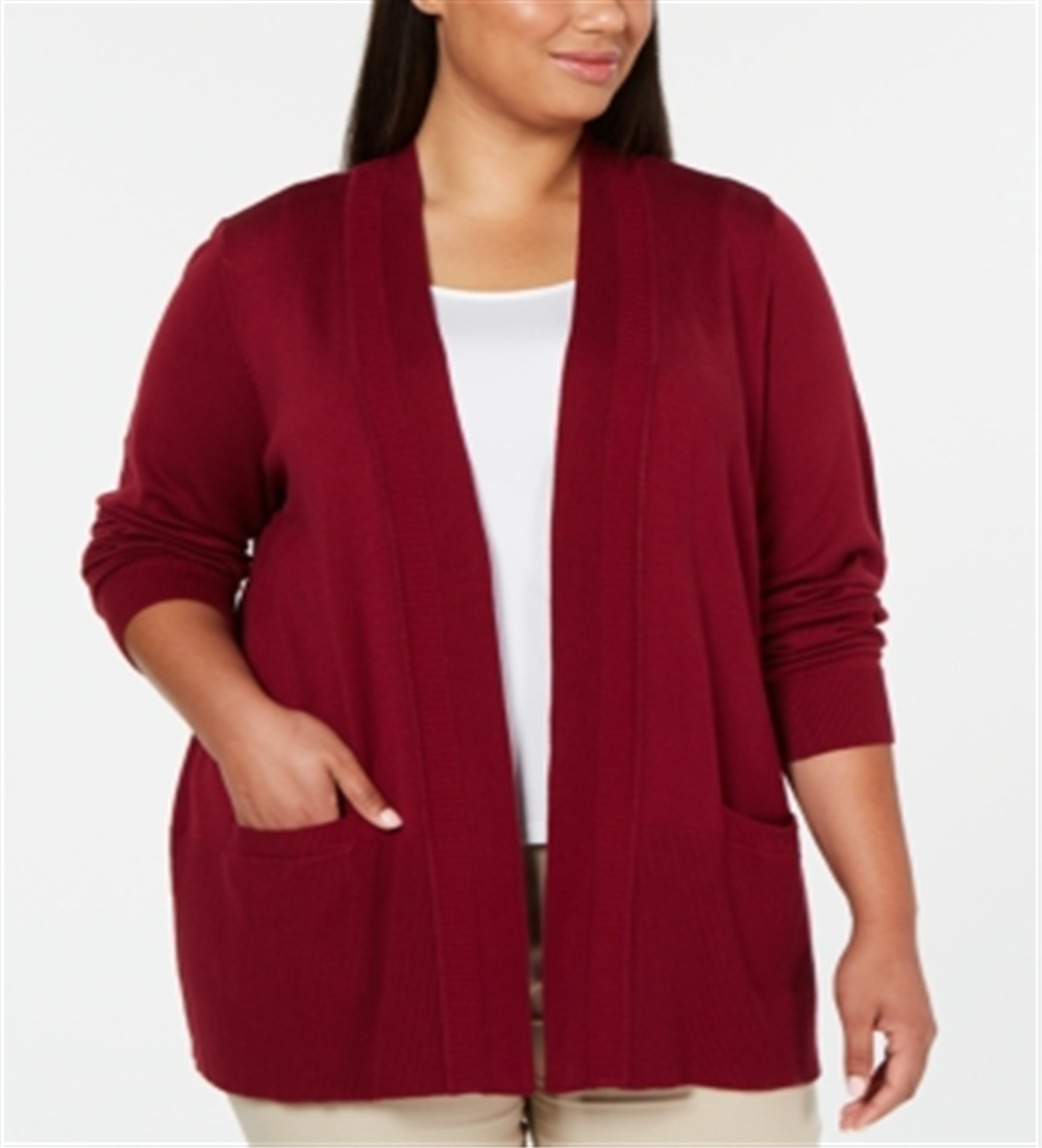 Karen Scott Suéter longo com acabamento canelado feminino, preto, tamanho 0X