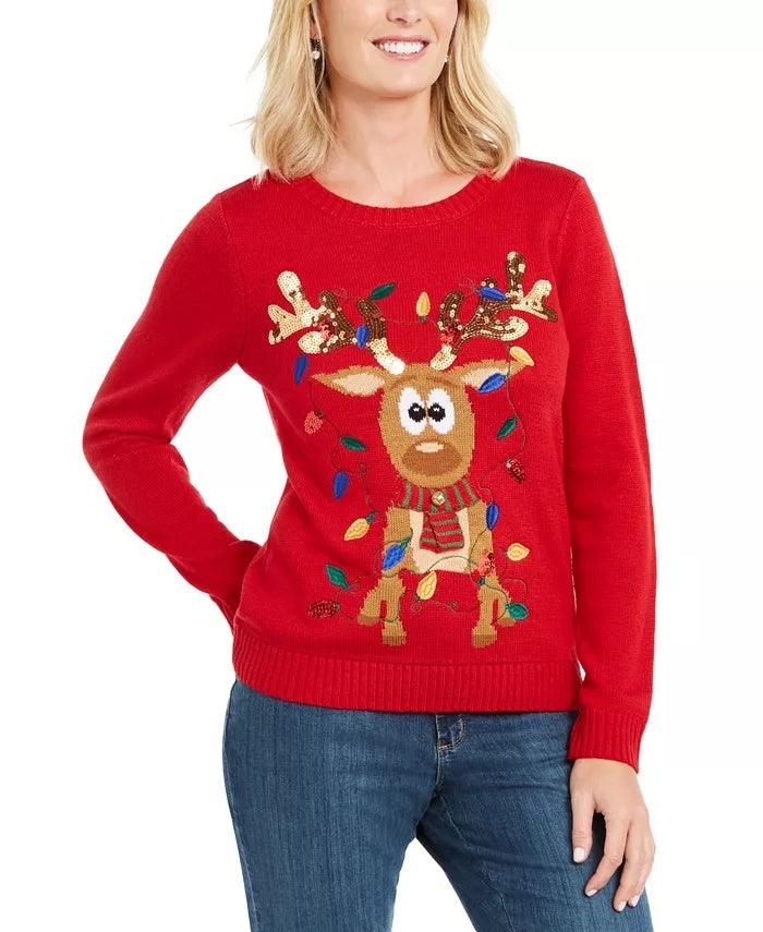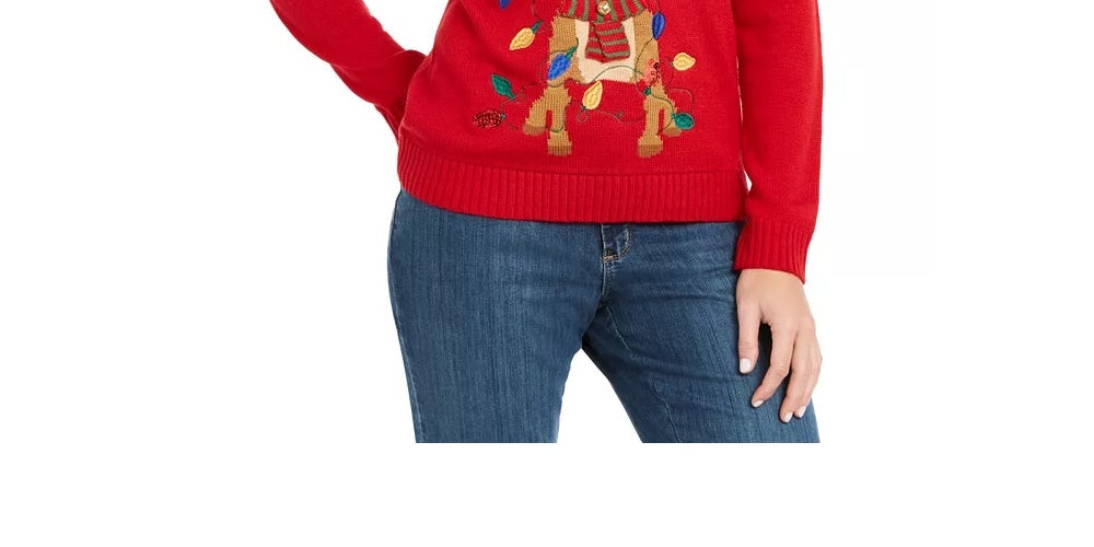 Karen Scott Suéter Feminino Rena Emaranhada com Lantejoulas Vermelho Brilhante Tamanho Grande