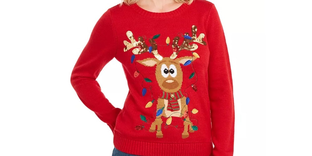 Ask a question about Karen Scott Suéter Feminino Rena Emaranhada com Lantejoulas Vermelho Brilhante Tamanho Grande