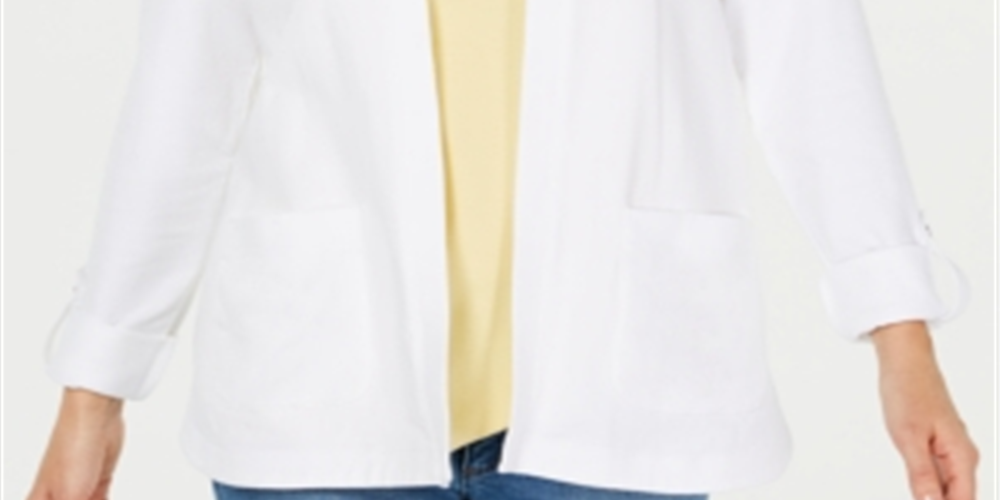 Moletom com capuz feminino Karen Scott Sport French Terry com frente aberta, branco, tamanho médio