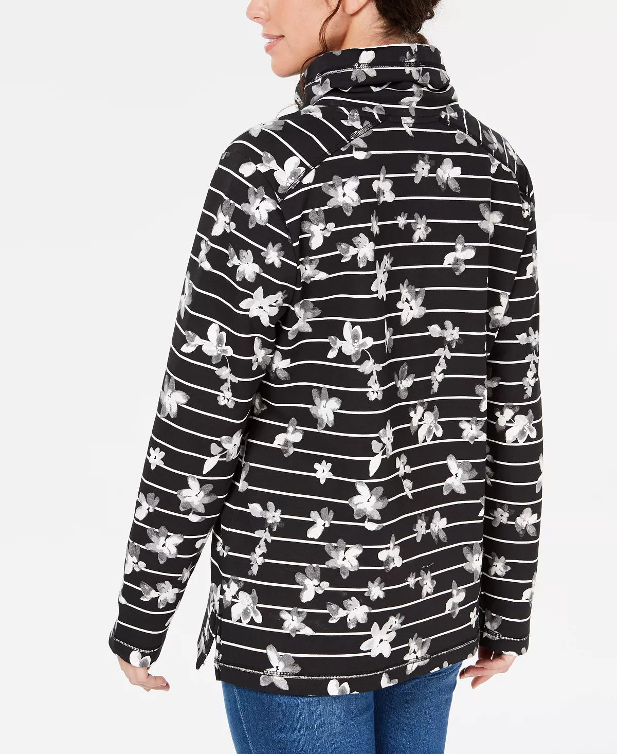 Karen Scott Top esportivo feminino estampado com decote funil, preto, tamanho XX-G