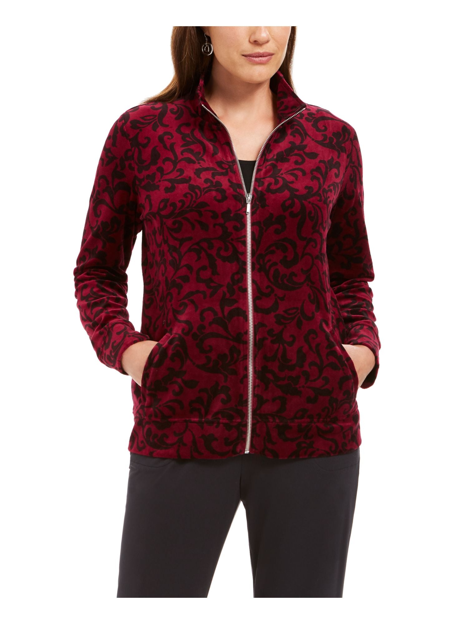 Jaqueta esportiva feminina Karen Scott estampada vinho tamanho extragrande