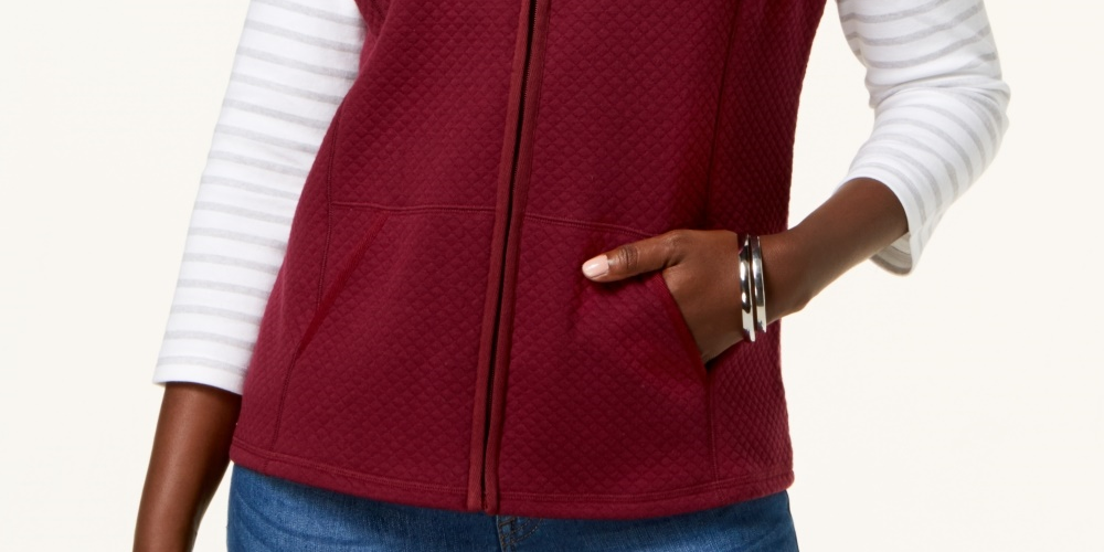 Ask a question about Colete esportivo feminino Karen Scott de lã acolchoada, vermelho, tamanho pequeno