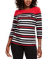 Karen Scott Sport Top Feminino Listrado Manga 3/4 Vermelho Tamanho Extra Pequeno