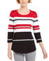 Karen Scott Sport Top Feminino Listrado Manga 3/4 Vermelho Tamanho P