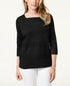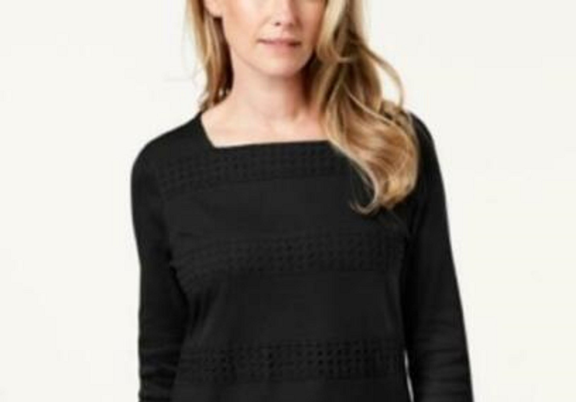 Karen Scott Blusa Feminina Listrada com Decote Quadrado e Renda, Preta, Tamanho P