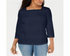 Karen Scott Blusa Feminina Listrada com Decote Quadrado e Renda Azul Tamanho Médio