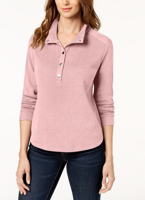 Karen Scott Blusa Feminina Gola Alta com Botões Frontais Rosa Tamanho PS