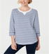 Karen Scott Moletom feminino listrado manga 3/4 azul - branco tamanho pequeno P