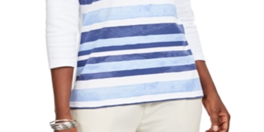 Karen Scott Blusa Listrada Feminina com Lantejoulas Branca Tamanho Pequeno P