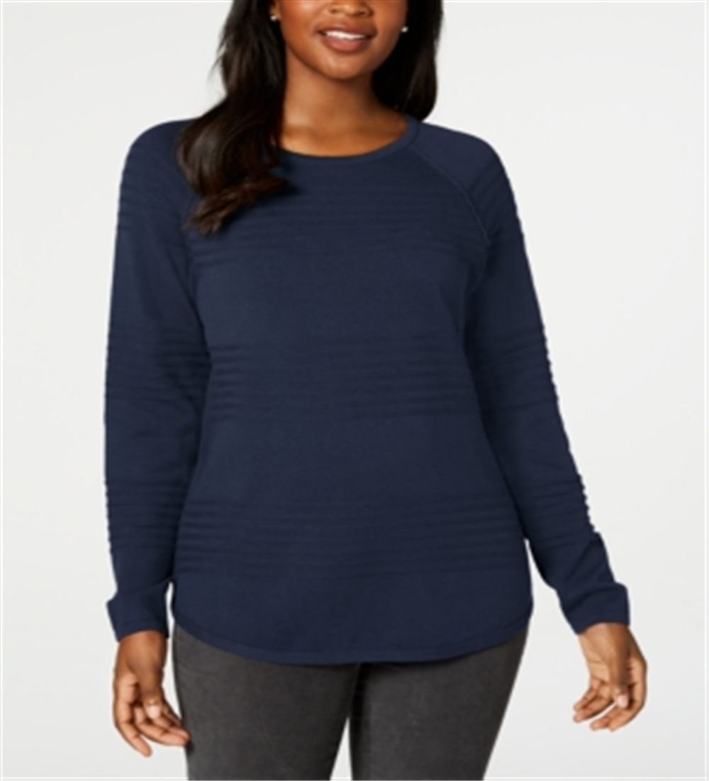 Karen Scott Suéter Feminino Texturizado Manga Longa Gola Redonda Azul Tamanho Pequeno Médio