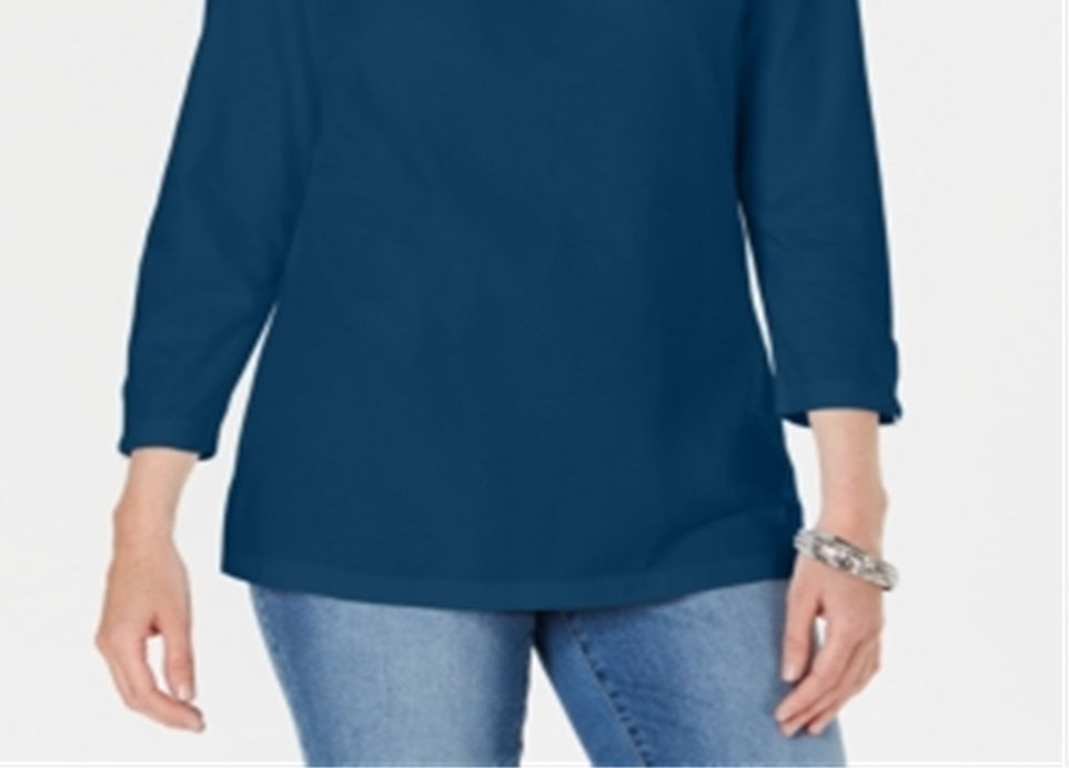 Conheça o top básico que você usará sempre; o estilo de mistura de algodão de Karen Scott adiciona um decote com detalhes em metal para um toque de elegância, não importa como você o use. Caimento relaxado; atinge o quadril; aprox. 27 de comprimento. Devido ao tamanho generoso, sugerimos um tamanho menor para um ajuste perfeito. Decote redondo com decote