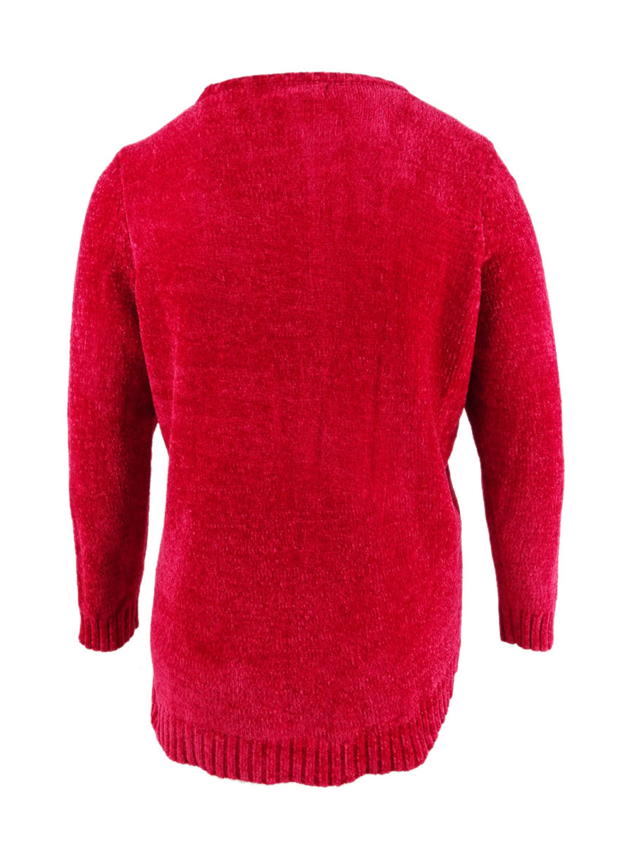 Karen Scott Suéter Feminino Gola V Chenille Vermelho Tamanho Pequeno Pequeno
