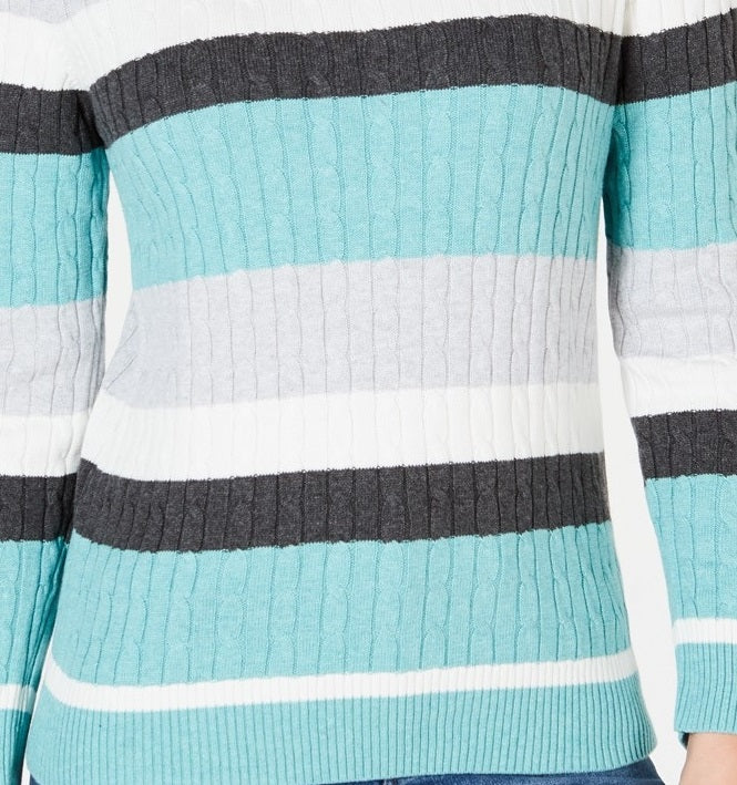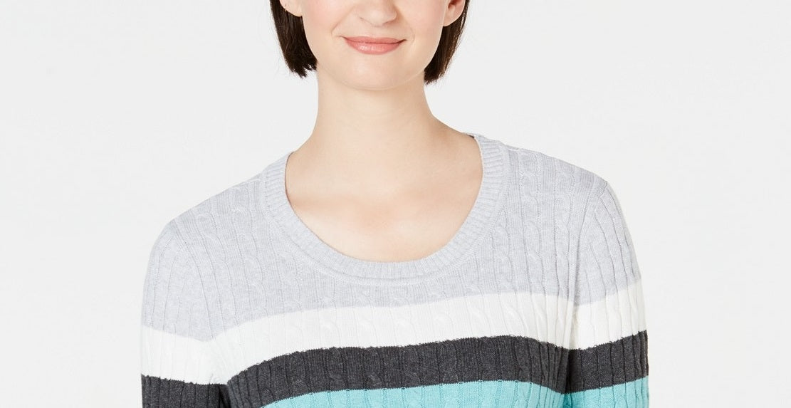 Karen Scott Suéter Listrado Veronica de Algodão com Cabo Feminino Preto Combinado Tamanho Grande
