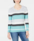 Karen Scott Suéter Feminino Veronica Listrado Algodão Cable Azul-petróleo Aqua Combo Tamanho Extra Grande