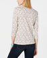 Blusa feminina Karen Scott com estampa de videira e manga 3/4, bege escuro, tamanho extra pequeno