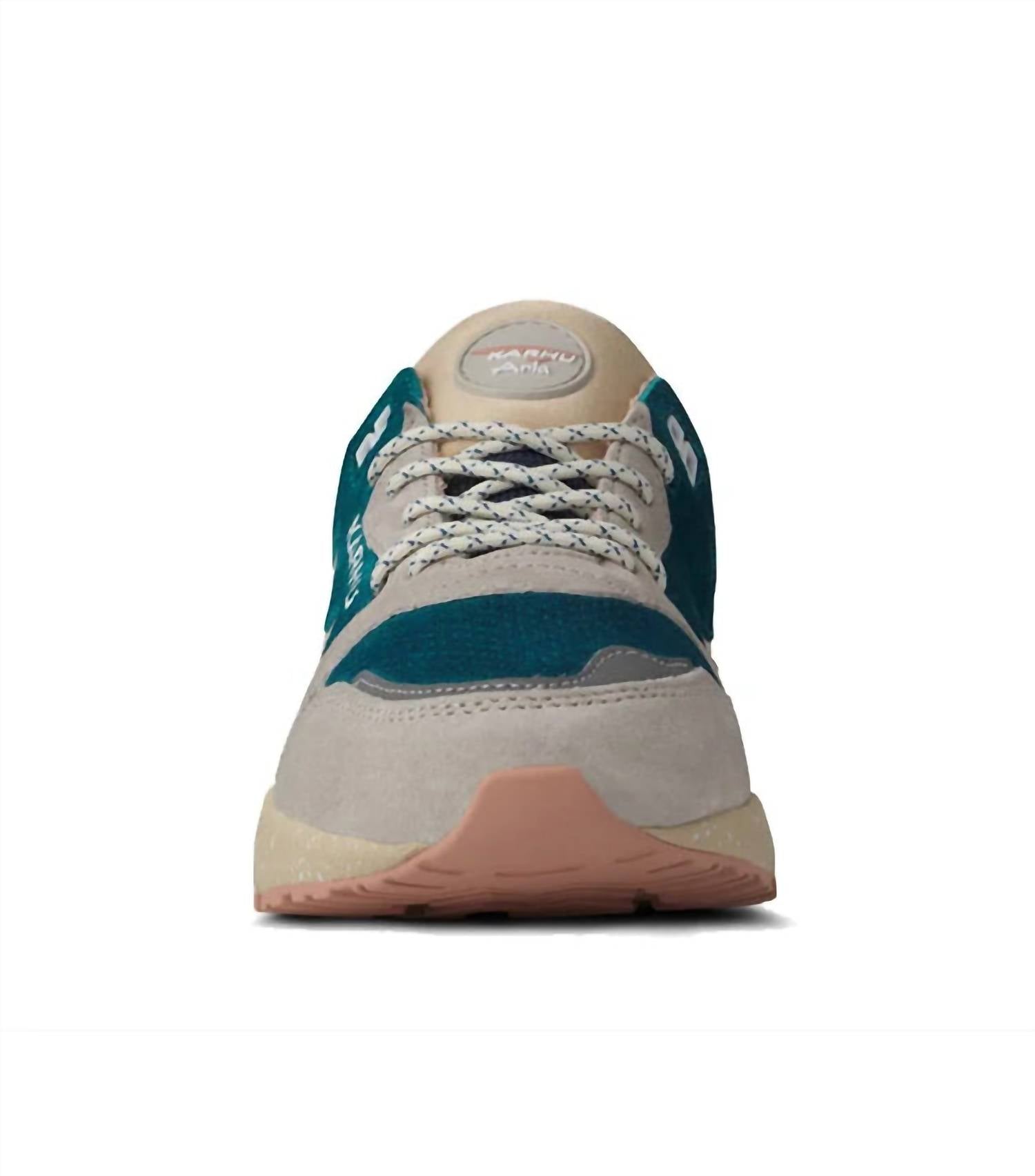The Aria 95 from the Karhu Legend collection combines retro innovation with modern comfort. It features a Lycra monosock construction, suede overlays, various meshes, rope laces, and reflective details. The sneaker includes an internal carbon fiber fulcrum and an embroidered detail on the toe for added style and comfort.