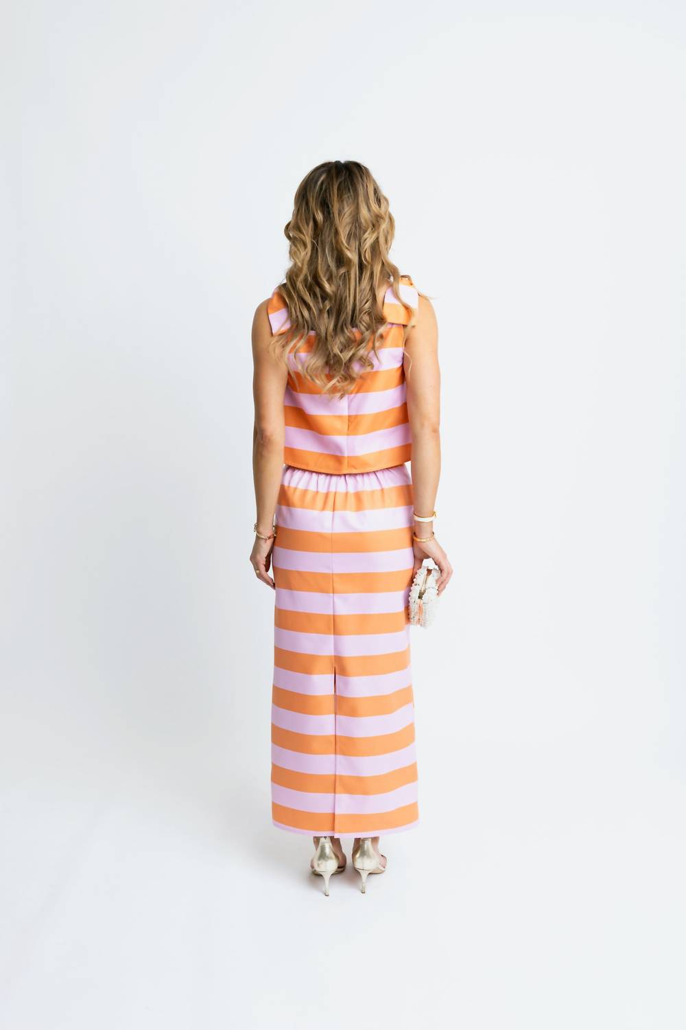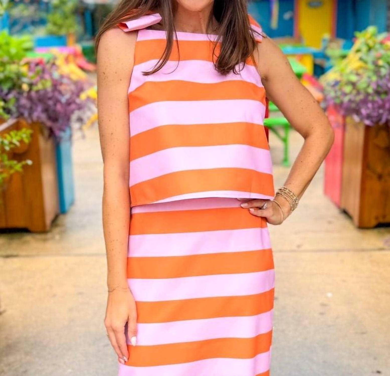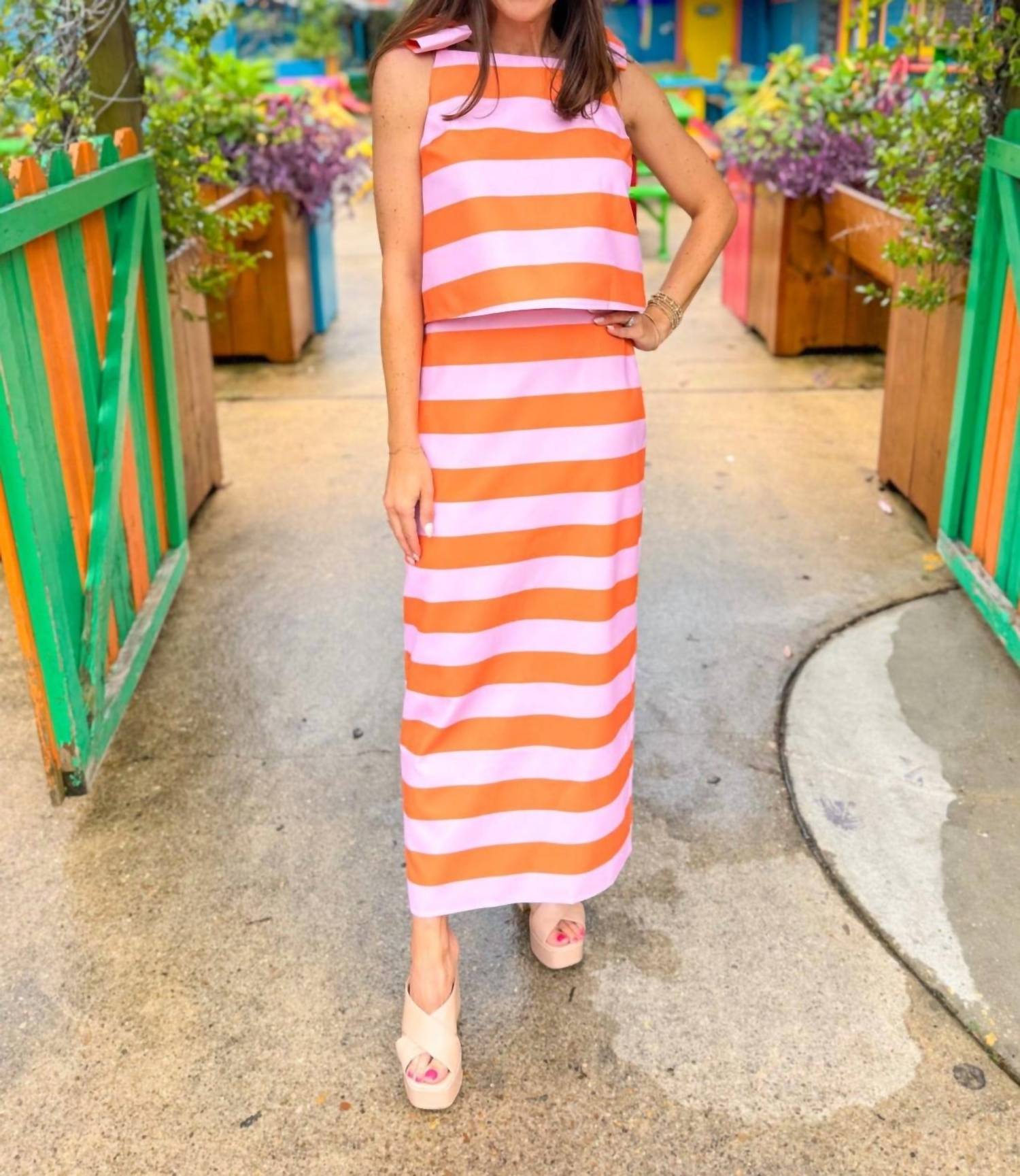 O Top Feminino Ophelia da Karlie é um item essencial para o verão, confeccionado em vibrantes listras rosa e laranja. Esta blusa sem mangas apresenta um elegante decote quadrado, perfeito para noivados e ocasiões especiais. Sem bolsos, proporciona uma silhueta elegante. Ideal para usar em climas quentes e fácil de combinar com diversos looks. Disponível nos tamanhos pequeno (2-4), médio (4-6) e grande (8-10).