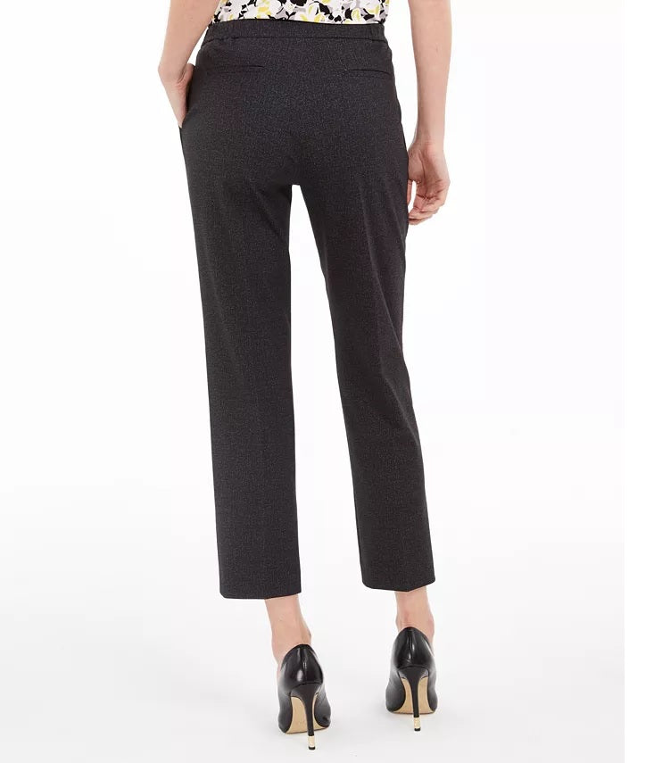 A altura aproximada da modelo é 1,78 m e ela veste tamanho 4 | Comprimento da costura interno aproximado: 73 cm | Cós médio; corte reto nos quadris e coxas; perna reta | Zíper com colchete e fecho de botão na frente; elástico na cintura | Bolsos inclinados nas laterais; bolsos embutidos atrás | Poliéster/elastano/viscose | Lavagem a seco