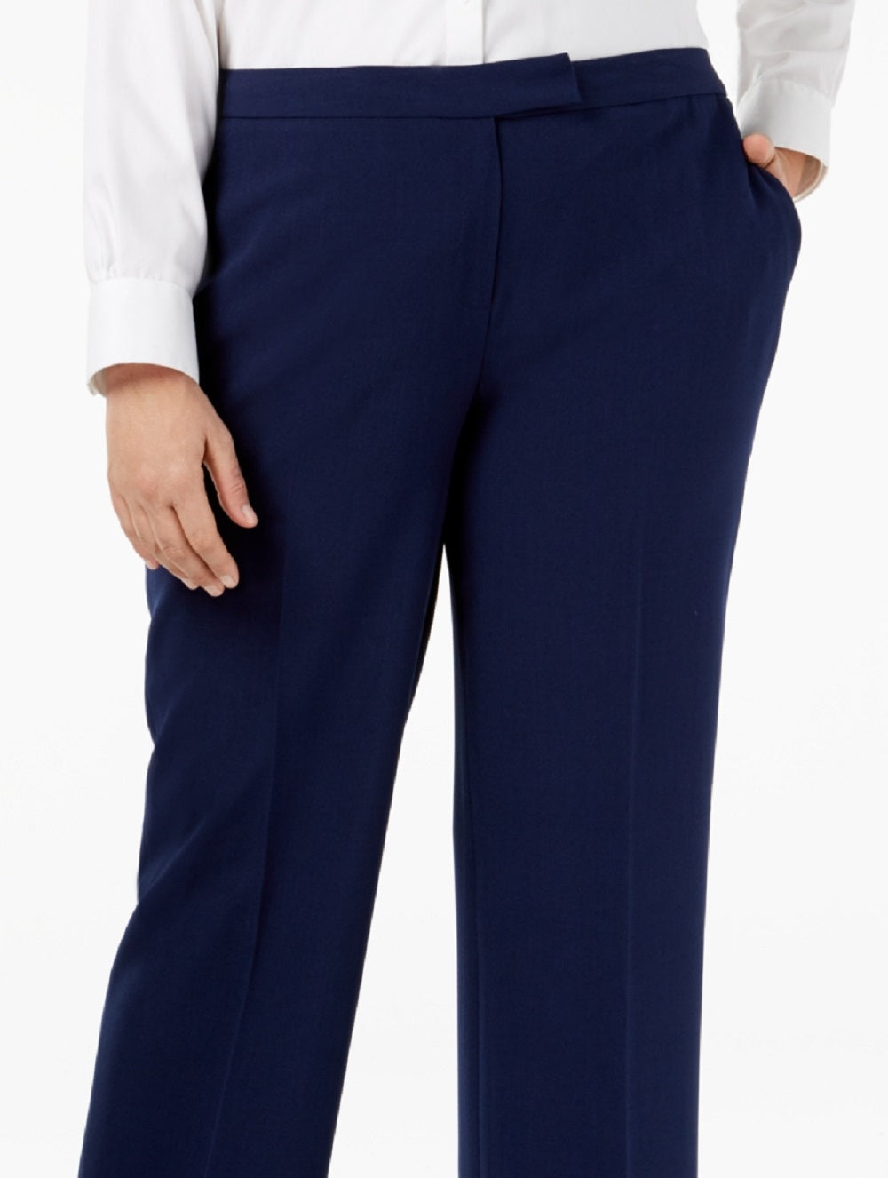 Elegantes e elegantes, estas calças plus size da Kasper apresentam uma silhueta de perna de calça para um visual profissional versátil, enquanto o cós alto adiciona ótima cobertura.