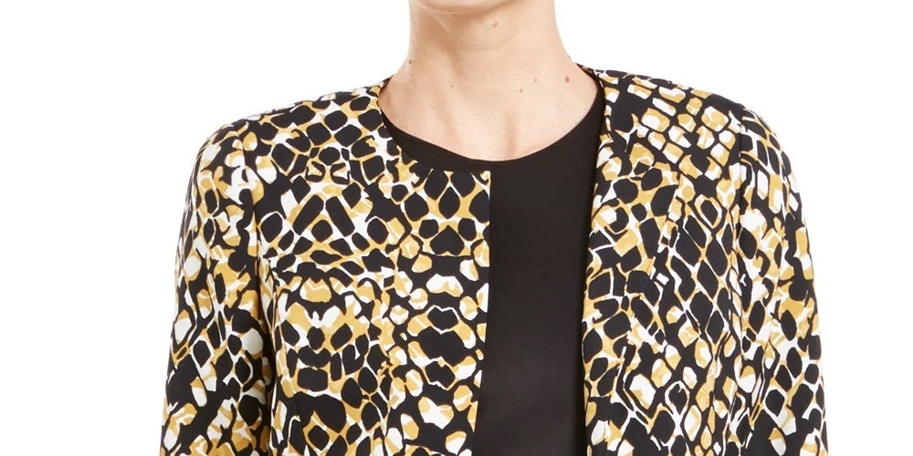 Jaqueta feminina Kasper com estampa animal e frente aberta, amarela, tamanho 6