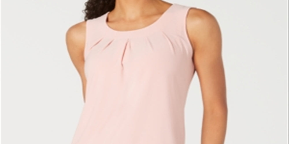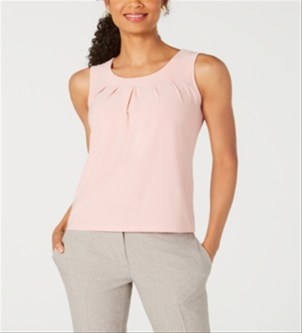 Blusa feminina Kasper sem mangas com decote plissado, rosa, tamanho grande