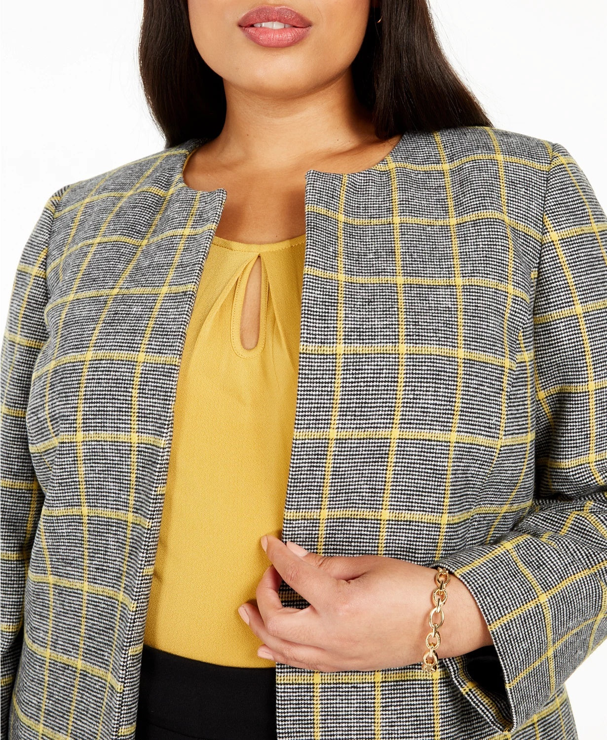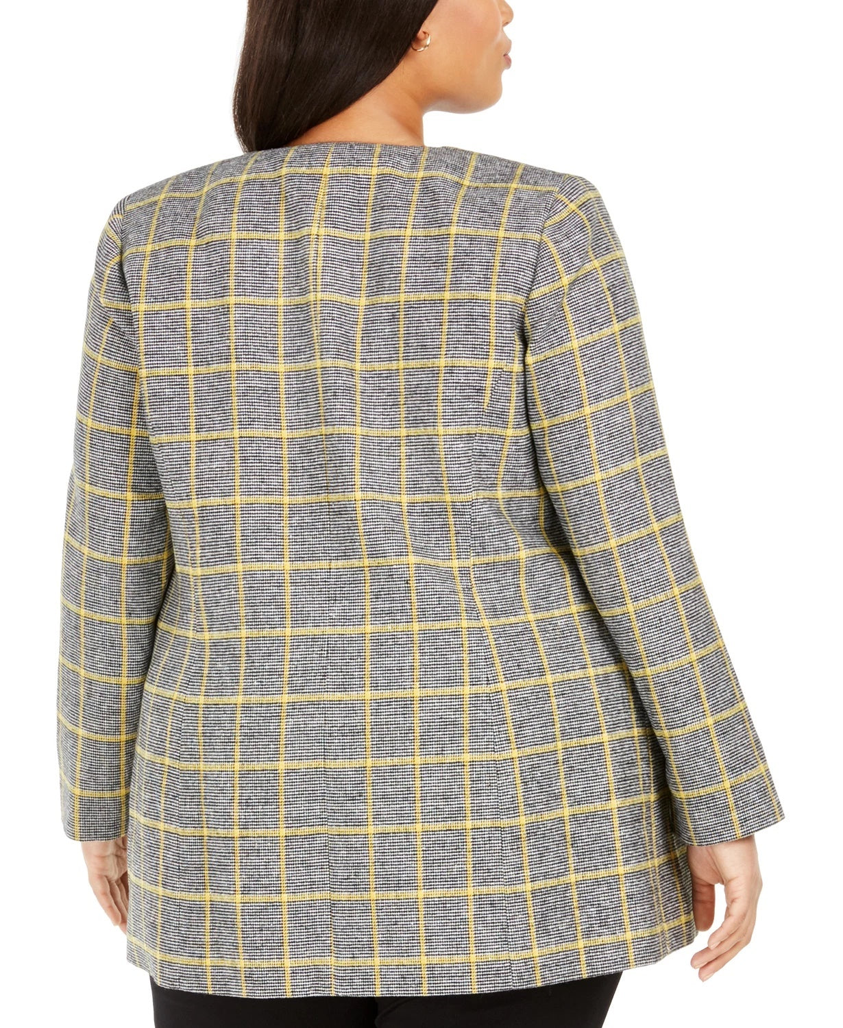 Blazer feminino plus size xadrez aberto na frente, amarelo, tamanho pequeno e pequeno