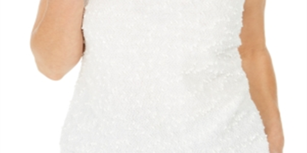 Blusa feminina Kasper texturizada com lantejoulas, sem mangas, gola joia, branca, tamanho P