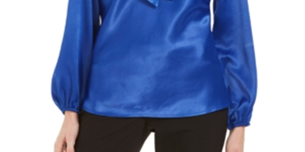 Blusa feminina Kasper com decote em V azul tamanho pequeno extragrande