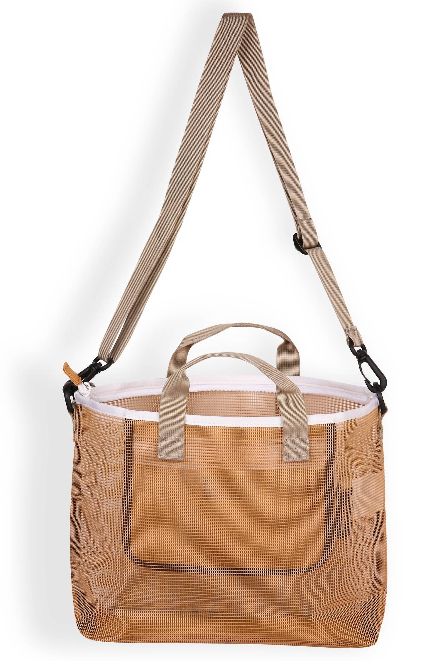 A bolsa tote multifuncional da estação. Entre no clima de férias com esta bolsa tote de tamanho perfeito, o acessório perfeito para dias de praia, festas na piscina ou jantares ao pôr do sol. Descubra a KAVU See Ya There Bag em impressionante Teca, uma pequena bolsa tote projetada para estilo e utilidade. Confeccionada em malha 100% poliéster de 355 g revestida com PVC e poliéster 600D resistente à água de 325 g, esta bolsa foi projetada para resistir às intempéries. A bolsa possui uma alça de ombro ajustável e removível em tecido com argola em D de plástico e fechos de pressão, além de alças fixas em tecido com costura em caixa. Possui um compartimento principal espaçoso com fecho de zíper bidirecional, bolso interno em tecido com zíper e um passador de chaveiro em tecido estampado. Dimensões: 24,5 cm x 29,5 cm x 10 cm (7 L / 427,16 pol. cúbicas). O comprimento da alça transversal pode ser ajustado de 78 cm a 149 cm.