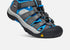 The KEEN Boy's Newport Sandal in Magnet/Blue is a durable choice for active kids. It features a flat heel design with a polyester webbing upper, which ensures comfort and breathability. This sandal is ideal for outdoor adventures. It incorporates a secure fit with a lace capture system and adjustable hook-and-loop strap. Machine wash gently with a small amount of detergent, then air dry for convenience.