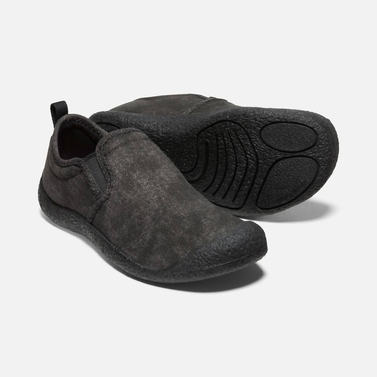 Discover summer-ready comfort with the Women's Howser Canvas Slip On by Keen, a stylish blend of inside-outside versatility in classic black canvas. Designed with a breathable material, this slip-on features all-day cushioning from its removable PU insole, ensuring the ultimate feel-good experience. The durable rubber outsole offers a sturdy, higher-traction option, perfect for outdoor adventures. Ideal for travel and summer athleisure, these flat heel sneakers are crafted for women with a medium shoe width and round toe shape.