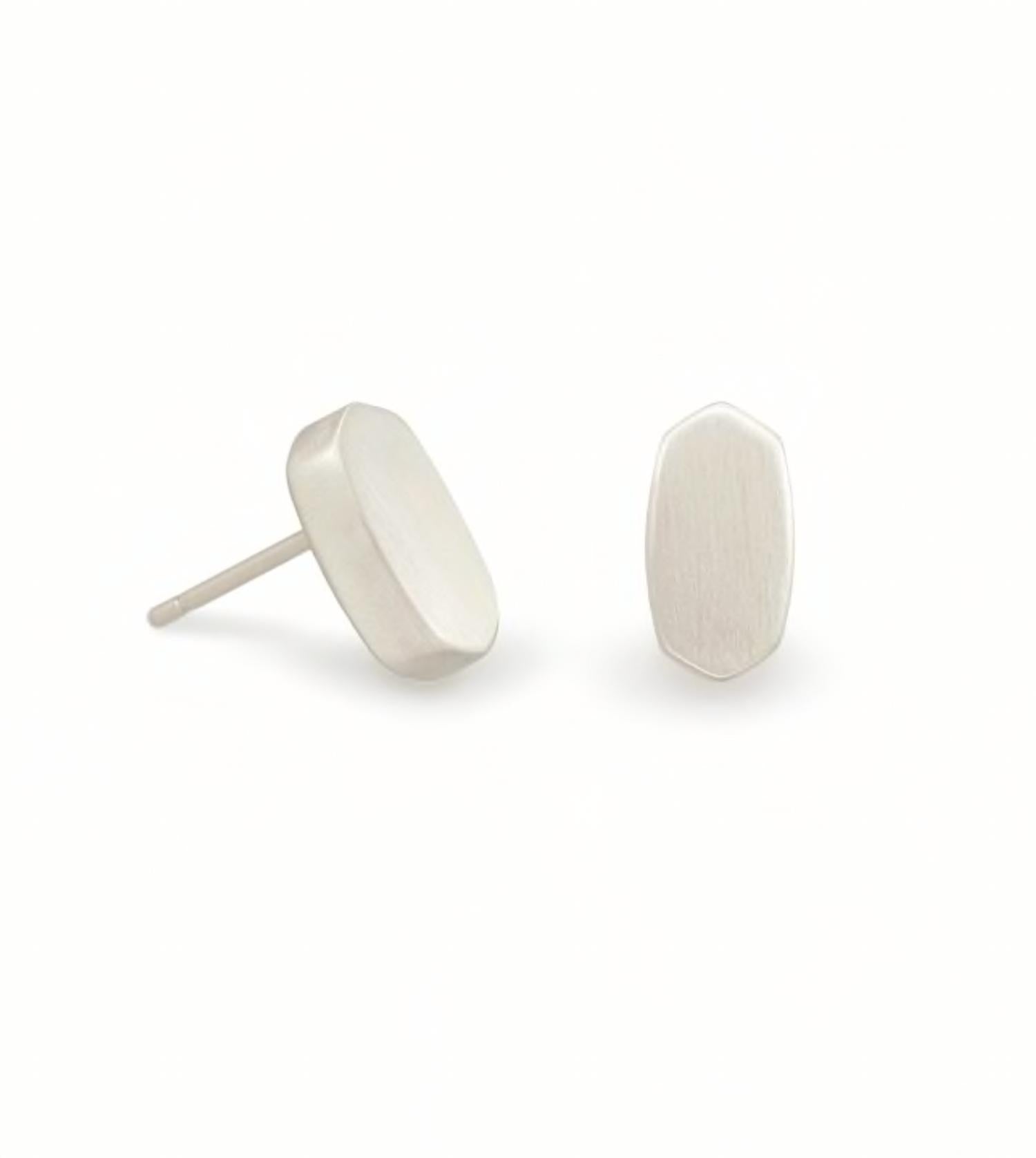 Brincos Barrett Stud em prata brilhante. Banhado a ródio sobre latão. 1 cm de comprimento x 5,3 cm de largura no tamanho do pino.